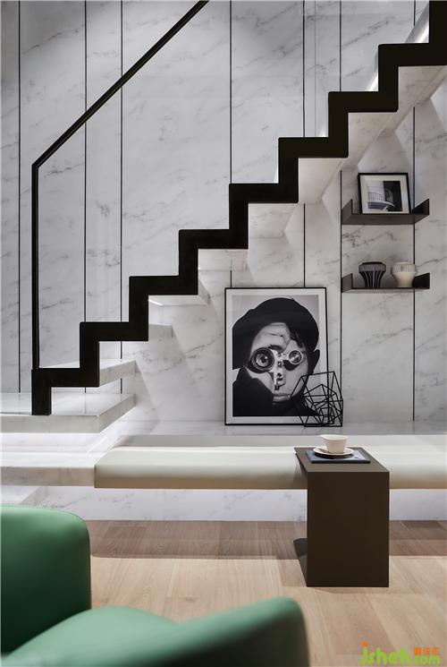 為加強主臥的完整性,設(shè)計師打破原始的墻體,重新進行規(guī)劃組合。增設(shè)而成的樓梯,亦是積木盒子的另類表達,增添一抹節(jié)奏與時尚之美。