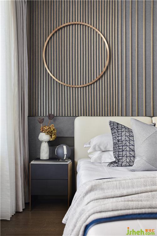 感官層面的情調(diào)與喜好、品質(zhì)與美學(xué)等皆可凸顯居者的生活態(tài)度。主臥床背景以干練的線條實現(xiàn)漸變,軟裝陳設(shè)亦在多元的搭配中展現(xiàn)出節(jié)奏感,描繪出優(yōu)雅舒適的居家藍(lán)圖。