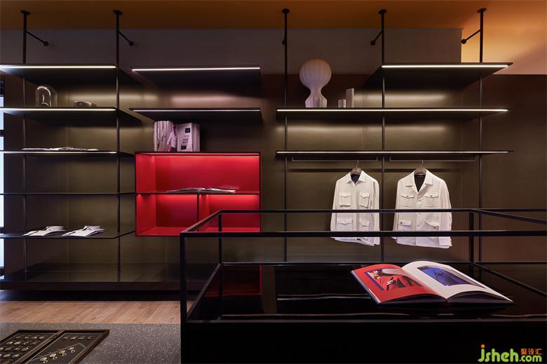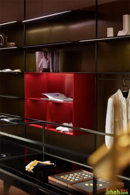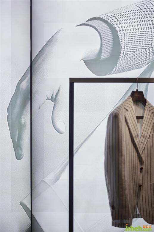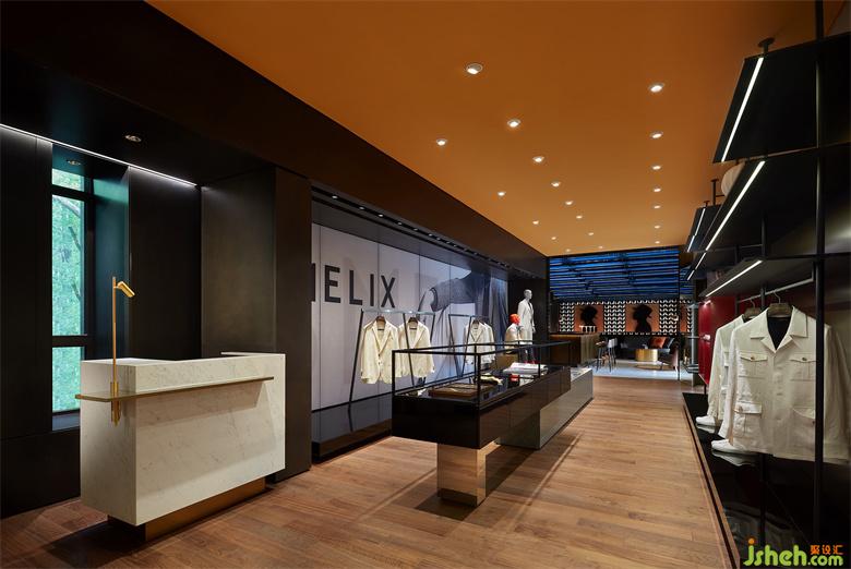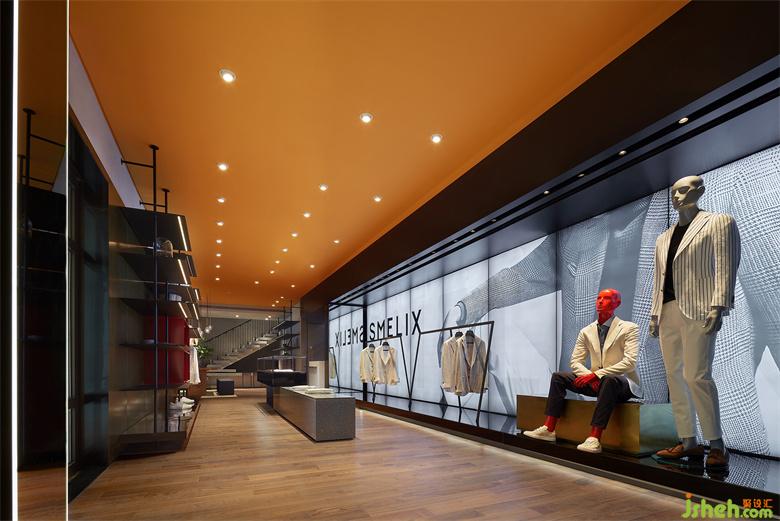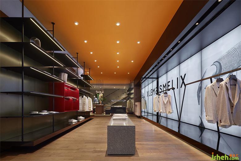 男裝店鋪設(shè)計(jì)以內(nèi)凹的BOX體塊,結(jié)合大面燈箱的使用,構(gòu)造出室內(nèi)櫥窗之感。根據(jù)前端的產(chǎn)品陳列樣式,亦可對(duì)燈箱實(shí)行全色域控制,使二者協(xié)調(diào)契合,另一方面也預(yù)留更多的可塑性。