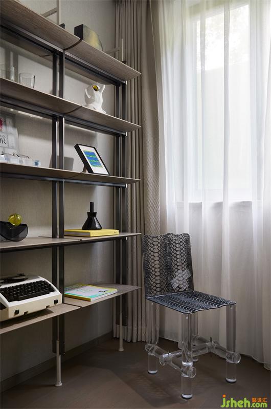 藝術(shù)源于生活,高于生活,最終又歸于生活。樣板間設(shè)計書房宛如藏寶閣,承載著家庭成員的喜好與興趣,各式珍藏單品置身其中,希望讓彼此獨具一格的審美與創(chuàng)意皆能盡情揮灑。