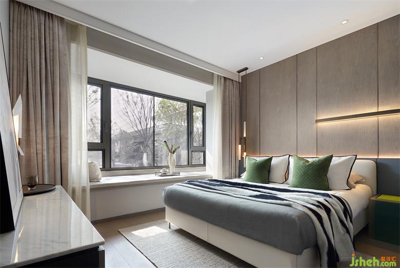 主臥套間在舒緩的基底下,深淺色階巧妙過渡,并讓橫向線條與豎向分割無形對話,慢慢推導(dǎo)出視覺中心點。溫潤的木飾面輔以燈帶烘托,潛移默化中鋪墊出細膩的感受,身處其中能令人放松、舒緩下來,給予內(nèi)心深處的庇護與安寧。