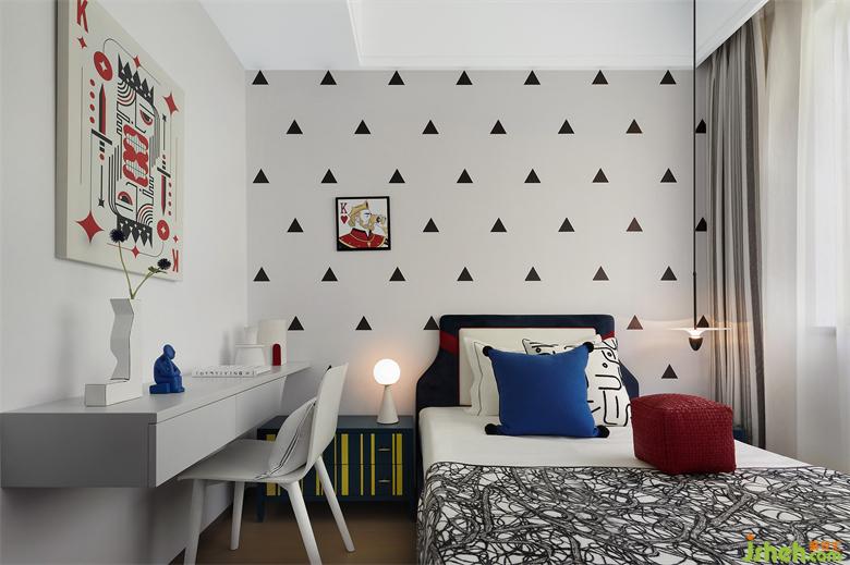 基于孩童的天性與視角出發(fā),兒童房從“紙牌游戲”中汲取靈感,圖案、造型、裝飾皆合理散落其中,繽紛明亮的色彩點綴,也渲染出游戲玩樂的氛圍,賦予這一方小天地別樣的趣味與活力,同時也能對小主人進行心智和情感上的啟蒙。