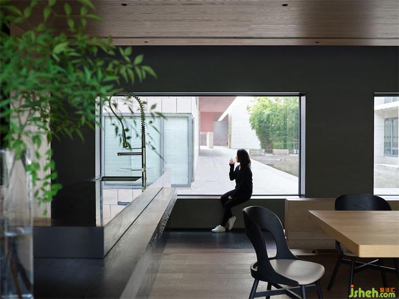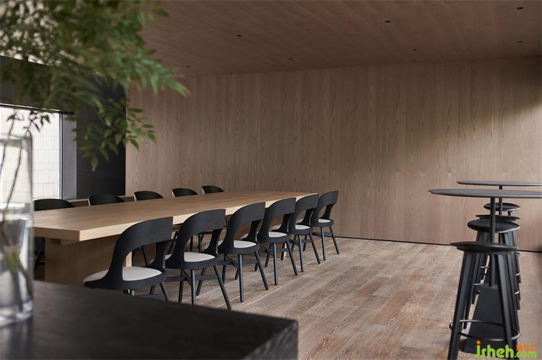 辦公室設(shè)計挑空處通道,仿若悠長的小巷。循步深入,餐廳予以木質(zhì)包裹出靜謐之感,多元的落座形式,高低錯落的關(guān)系勾勒輕松的氣氛。