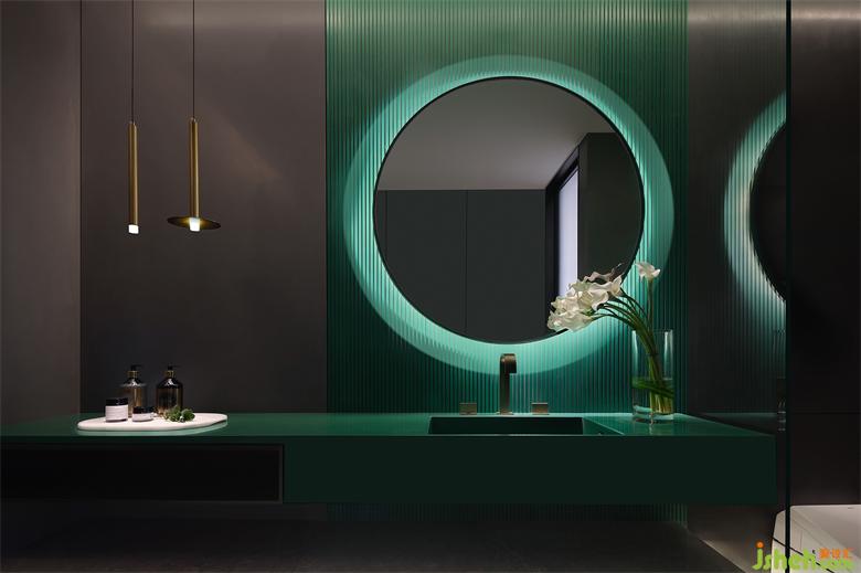 主衛(wèi)亦不落俗套,方正與圓弧的碰撞、造型與肌理的交替,“綠”的蹤跡也飄然其中,以極具沖擊力與辨識(shí)度的觸點(diǎn),豐富多維感知。