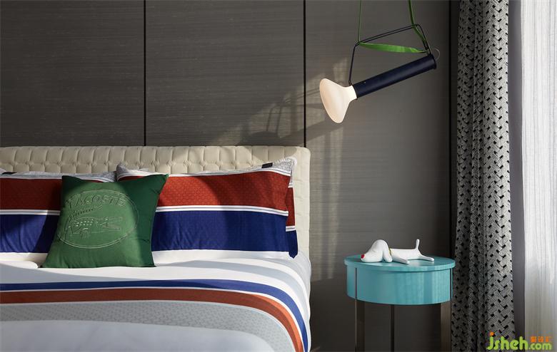 在兒童房引入現(xiàn)代藝術(shù)解構(gòu)主義,對(duì)色彩、形式進(jìn)行打碎與重組,模糊童趣與沉穩(wěn)的邊界,增加靈活性,也營(yíng)造出令人心安的暢游之境。