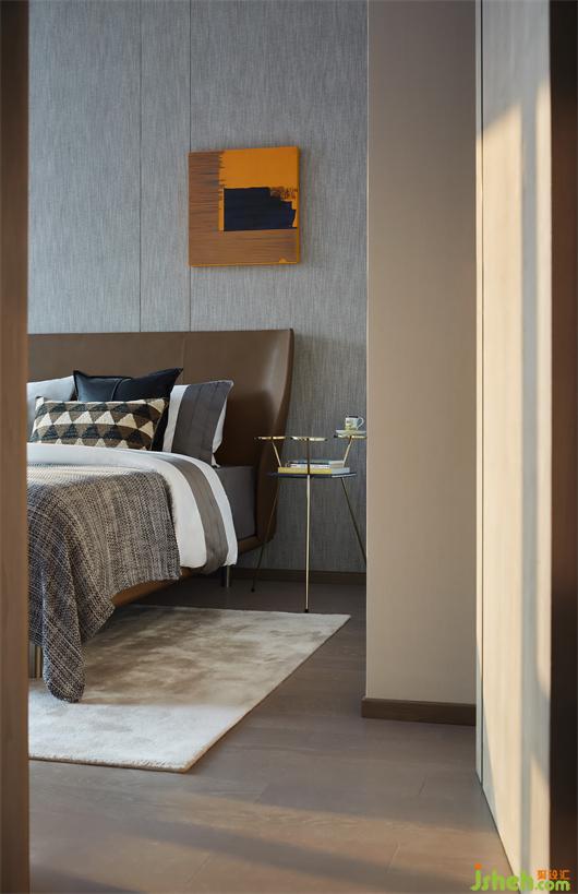 次臥貫徹中性灰的基調(diào),顯得細(xì)膩平和,回歸臥室的本質(zhì)屬性。樣板間設(shè)計(jì)在軟裝陳設(shè)上,或呼應(yīng)、或碰撞、或跳脫,也流露出極強(qiáng)的包容感與可適性。