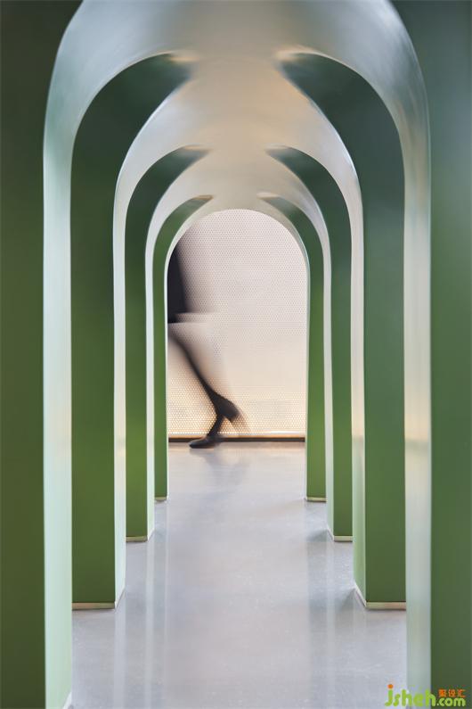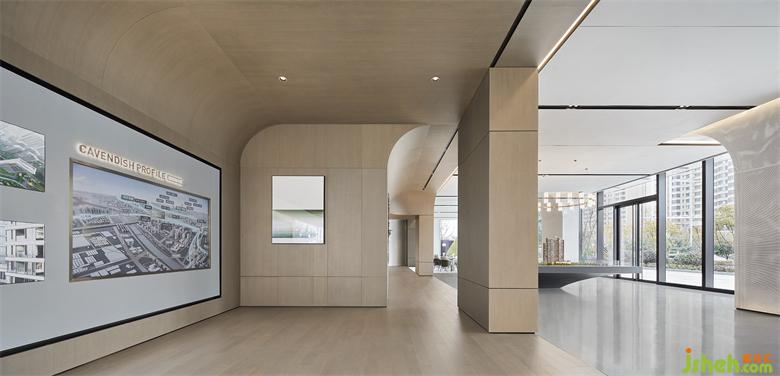 鮮明的BOX體塊以一種似有若無的狀態(tài)分割著左右兩側(cè),半拱形穹頂?shù)臉?gòu)造則是統(tǒng)一的語言,強(qiáng)調(diào)著整體與呼應(yīng)。南京售樓處設(shè)計(jì)彼此交相輝映,一半溫潤、一半空靈,氤氳開浪漫氣韻,并充滿著氣勢,豐富空間立體感。