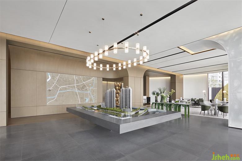 訪客視線隨著多樣元素的層疊錯落,輕松、舒適的洽談區(qū)域便呈現(xiàn)在眼前。得益于對透視法則的精準把控,多種落座形式的布局,尺度感與秩序性依舊合理且清晰。南京售樓處設計臨窗處,沙發(fā)、飾品的形狀,同樣飽含深意,與弧形的建筑外立面巧妙關聯(lián)響應。