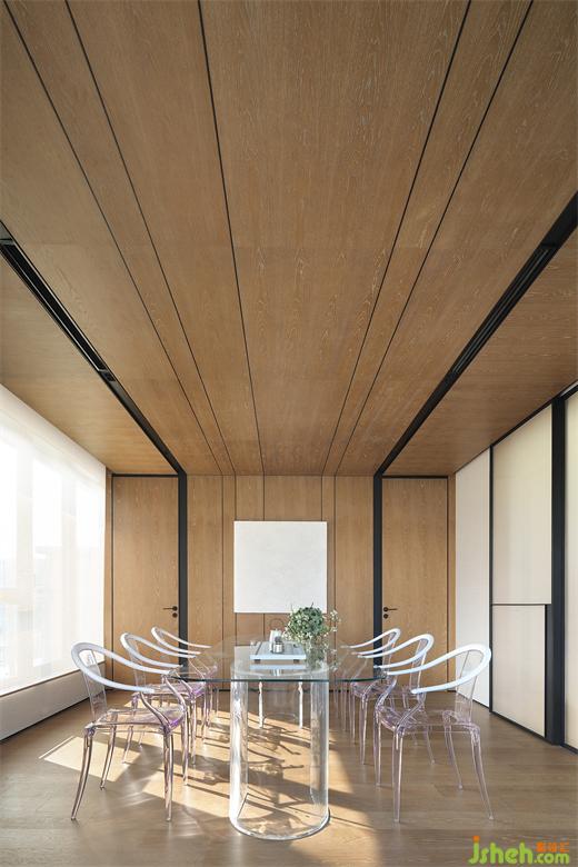 在珠海樣板房設(shè)計(jì)中不斷探索和審視居者與周圍事物、景色的關(guān)聯(lián),于是拆除一面墻體,讓大片落地玻璃將庭院景觀引入,揮桿之際,都市品格與自然情致渾然合一。