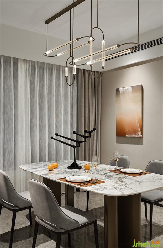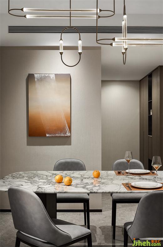 三餐四季,人間煙火,理想居所離不開(kāi)對(duì)餐廳的刻畫(huà)。開(kāi)敞式格局模糊了各區(qū)界定,南京樣板間設(shè)計(jì)以一花一枝,一桌一椅,勾勒出滿滿的就餐儀式,方寸之間盡顯溫情。