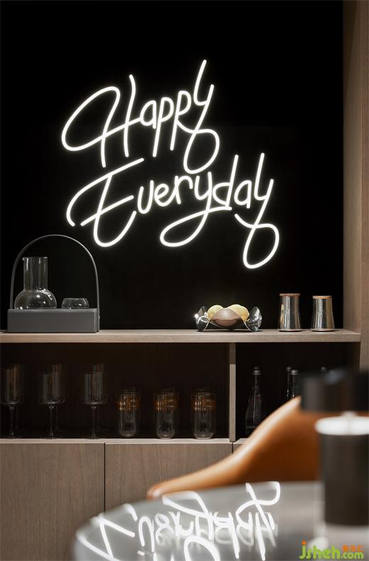 作為客廳向外的延伸,陽(yáng)臺(tái)精巧與閑適并存。南京樣板間設(shè)計(jì)多功能柜體與發(fā)光裝置默契搭配,儼然化身一派迷你吧景象,或推杯換盞,或自省獨(dú)思,一舉卸下滿身的疲憊。