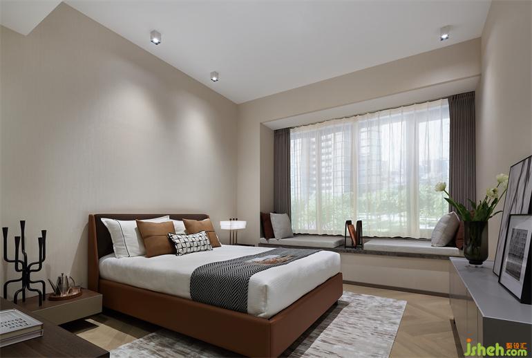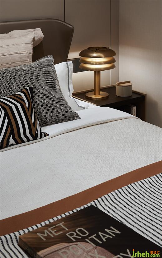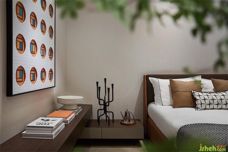 主臥套間延襲主體基調,南京樣板間設計以簡而有序的藝術形式著筆,橙色貫穿始終,除卻外在的視覺呈現(xiàn),更有內核的格調追求。地板采用人字拼手法凸顯層次,其趣味美感與細節(jié)推敲更顯設計功力。