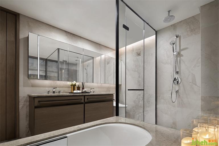 雙排衣帽間的劃分更加細致、全面,南京樣板間設計并以周全的考量,兼顧功能和展示屬性,讓實用與美學達到最佳平衡。浴室是最接近自我的地方,極致的簡約風搭配大理石質感的墻面、臺盆等,仿佛放下心防的赤誠,只余純粹與精致。