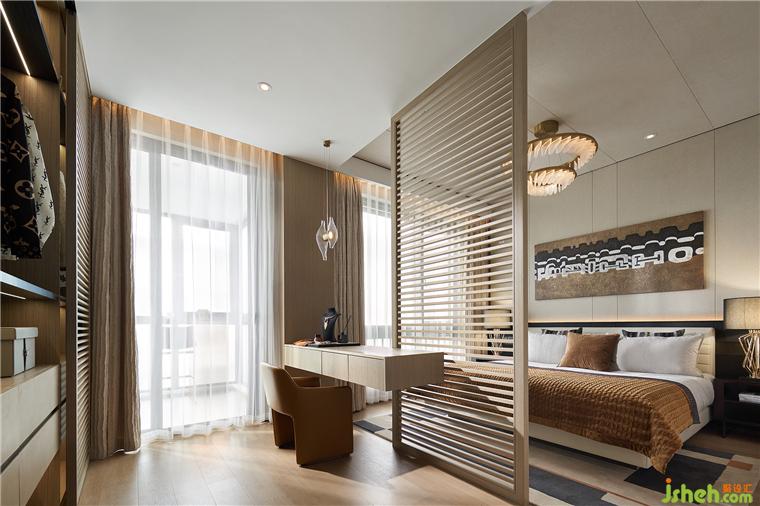 光影隨著木格柵一同律動(dòng),相互滲透,虛實(shí)結(jié)合,樣板間設(shè)計(jì)于精奢的質(zhì)感之中也創(chuàng)造出獨(dú)特的疆域。