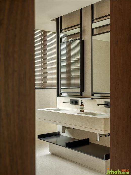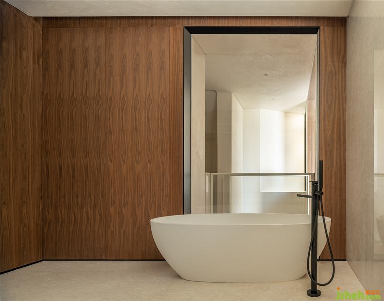 衛(wèi)浴空間以臺盆鏡柜充當(dāng)樞紐向外圍發(fā)散,調(diào)動多維感觀,給予便捷呵護(hù)。疊墅設(shè)計在光線引入和氛圍營造上也細(xì)致規(guī)劃,浴缸臨窗而設(shè),內(nèi)外交融對話,讓沐浴變得更加愜意與趣味。