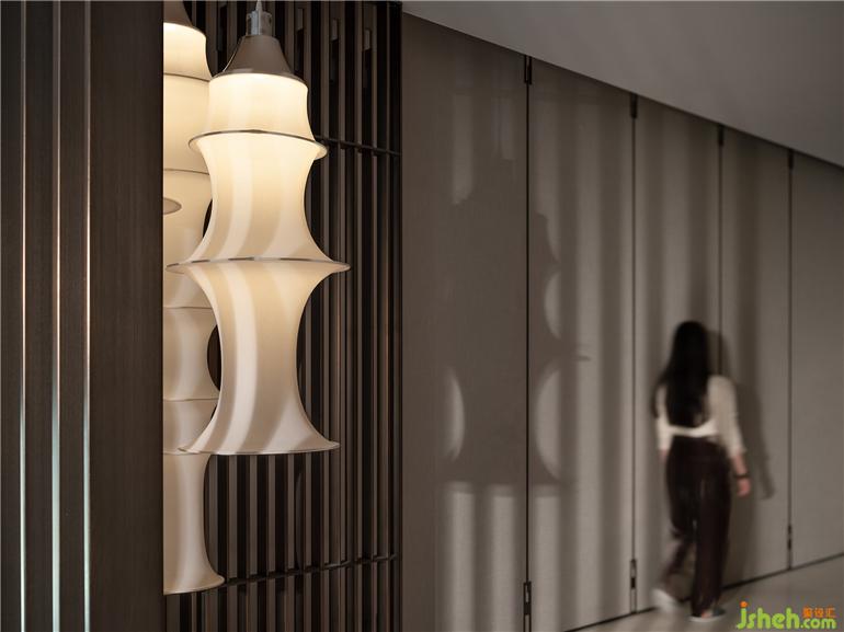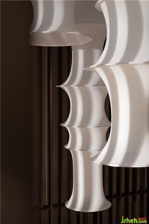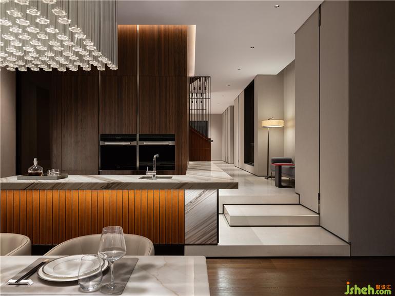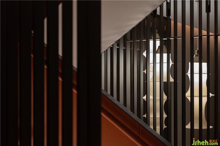 常州天安別墅設(shè)計以寫意筆觸營造歸家的極致儀式感,虛實相生的造景手法,光影流動、意境悠然。金屬格柵作底,吊燈疊映其上,光源映射強化細節(jié),隨即樓梯轉(zhuǎn)角一隅也隱約而現(xiàn),目之所及材質(zhì)碰撞、造型輝映,一切渾然交融、盡顯和諧。