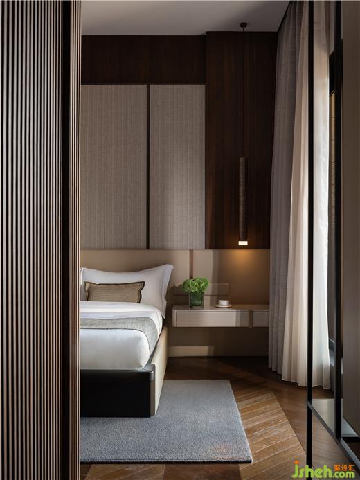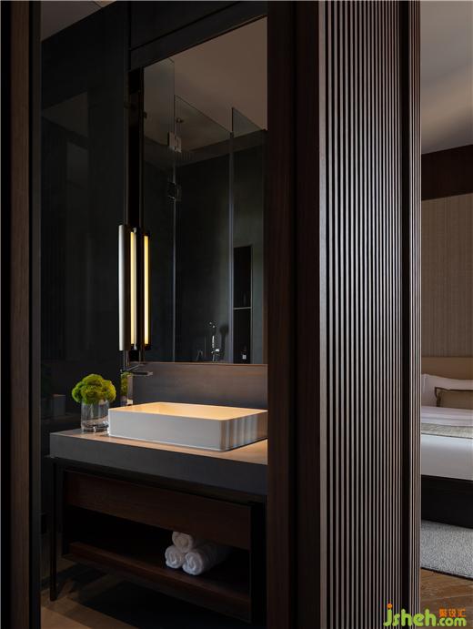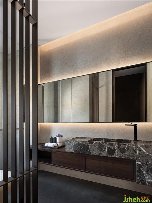 格柵以一氣呵成的過(guò)渡關(guān)聯(lián),加強(qiáng)臥室與衛(wèi)浴空間的連貫性,立體而生動(dòng)。