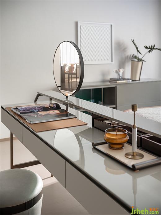 在低調(diào)中流露沉穩(wěn),于簡約中鑄就細節(jié),主臥套間借助輕盈的線條、嫻熟的構(gòu)成手法、以及塊面與圓弧的順暢交融,氤氳著深層的內(nèi)涵與意味。梳妝桌與床頭柜一體成型,在起伏中極具互動性與關(guān)聯(lián)感。