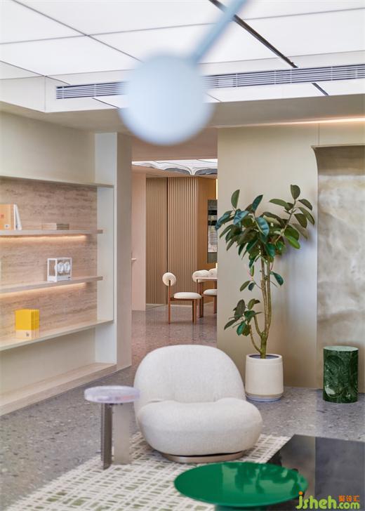 落地門窗的引入,有效實現(xiàn)南向朝陽面的采光最大化,也讓室內(nèi)與庭院無縫銜接。此外頂部燈膜營造的人造光源,進一步提升了光照效果。動線的流暢規(guī)劃與精妙串聯(lián),讓廚房和餐廳區(qū)域同樣可以透過門洞來欣賞庭院風景。