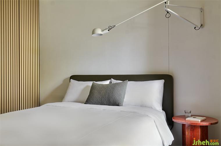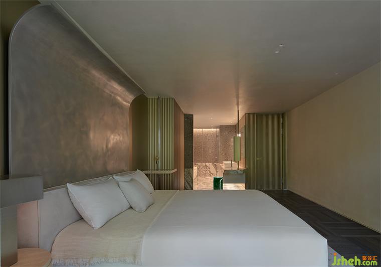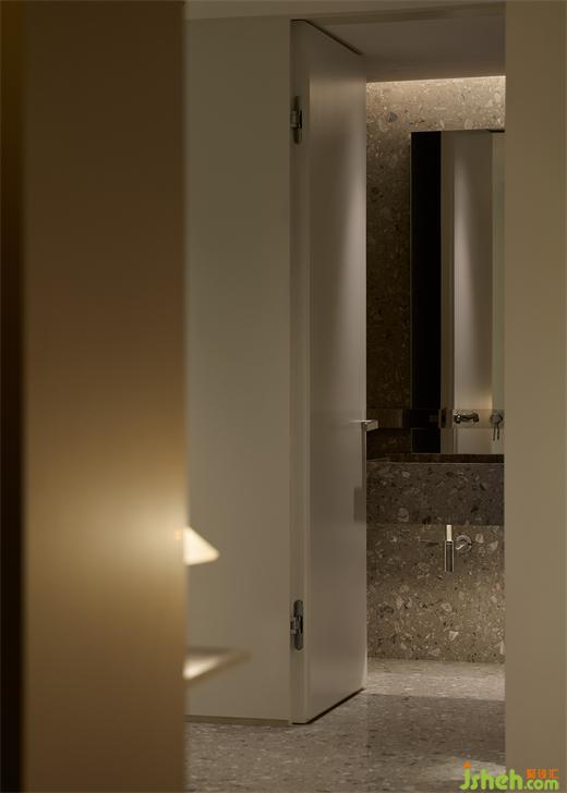 次臥同樣有著簡潔的色調(diào)、溫潤的基底,舒適隨性是其最優(yōu)注解。房門以及內(nèi)部移門的相互配合,讓次衛(wèi)靈活轉(zhuǎn)換,也可充當(dāng)公衛(wèi)之用。