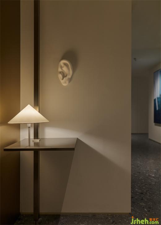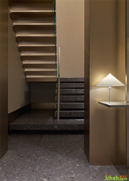 樓梯貫穿上下兩層,設(shè)計師以造型、材質(zhì)、燈光來凸顯其穿透性與輕盈度,豪宅設(shè)計在光線和視覺上建構(gòu)起有趣的關(guān)系和耐人尋味的細(xì)節(jié)。