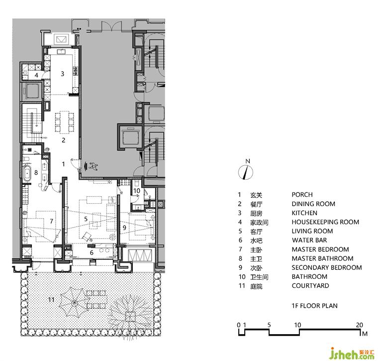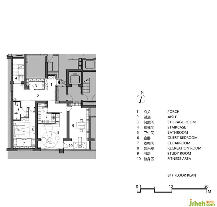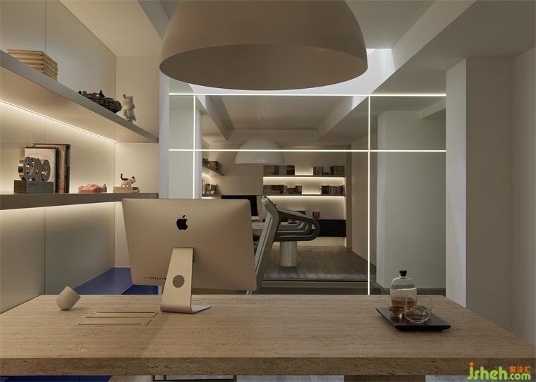 L先生還酷愛閱讀,博覽群書,書房內擺滿了各類書籍典藏,并為他閱讀或創(chuàng)作提供了安靜的場所。借助天井采光,將跑步機安放其下,酣暢運動之際,與自然也近在咫尺。此外,末端的一扇門同樣具備機動可變性,能因需實現影音室與書房的聯通或獨立。