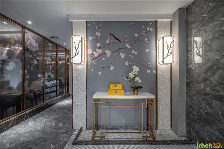 屋內(nèi)輕系著柔白紗簾的包廂,灰白相間的地面,帶有質(zhì)感桌椅,門(mén)件柜體上點(diǎn)綴的黃銅配飾,所有質(zhì)樸的色調(diào)通通席入眼底,緊密編織成與都市喧嘩顯示高反差的怡然寧?kù)o;這股寧?kù)o,依循日光的走向,彌漫到另個(gè)廂房。