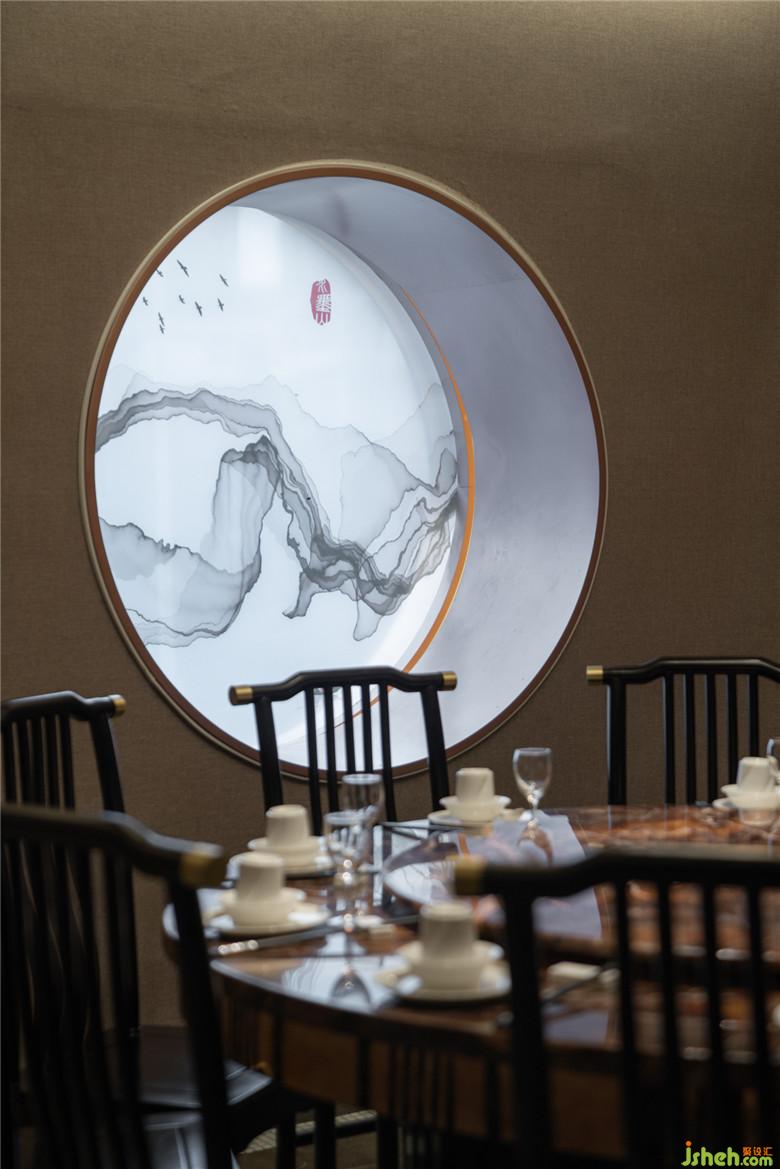 跳躍的紅色結(jié)合異形的結(jié)構(gòu),形成了一個(gè)個(gè)動(dòng)態(tài)的內(nèi)飾,十分搶眼。簡(jiǎn)潔的射燈為紅色墻面增添了幾分靈動(dòng)與跳躍,不但成為活躍空間氣氛的亮點(diǎn),而且避免了大面積鋪陳所帶來(lái)的壓抑感,一定程度上實(shí)現(xiàn)了空間的視覺(jué)擴(kuò)容。餐廳設(shè)計(jì)