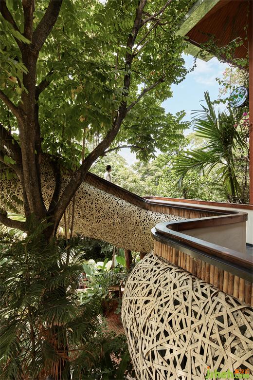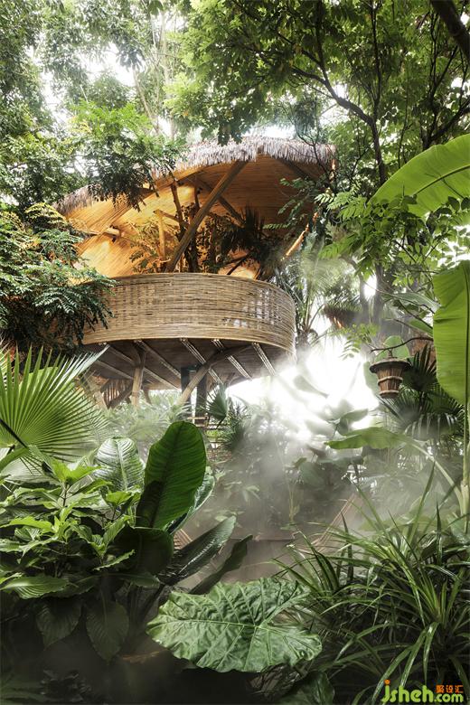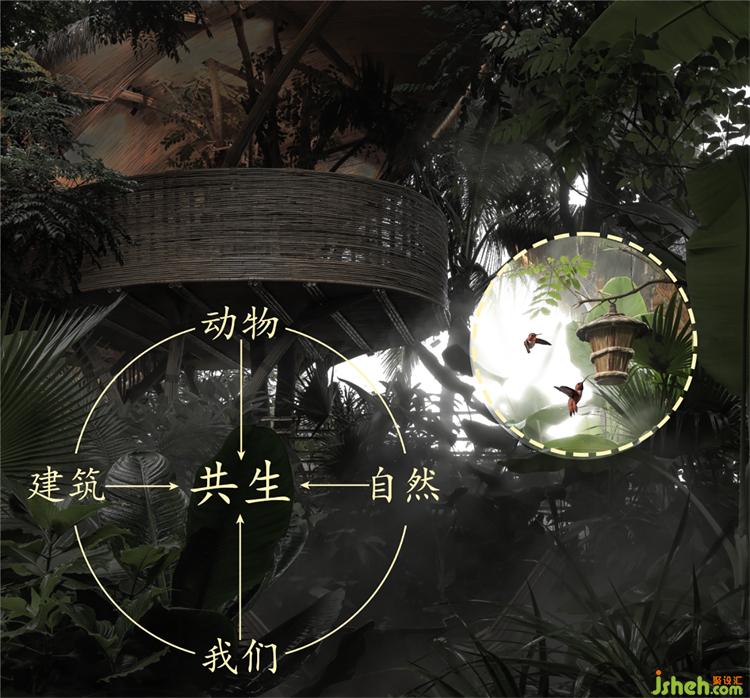 我們在為人類設(shè)計體驗空間的同時,我們并沒有去驅(qū)逐甚至破壞“原住民”的家,我們將小鳥的住所藝術(shù)化保留了下來,每一處設(shè)計細節(jié),都盡可能尊重自然,融合自然,將建筑本身化作雨林的一部分。
