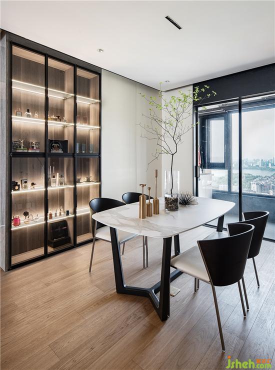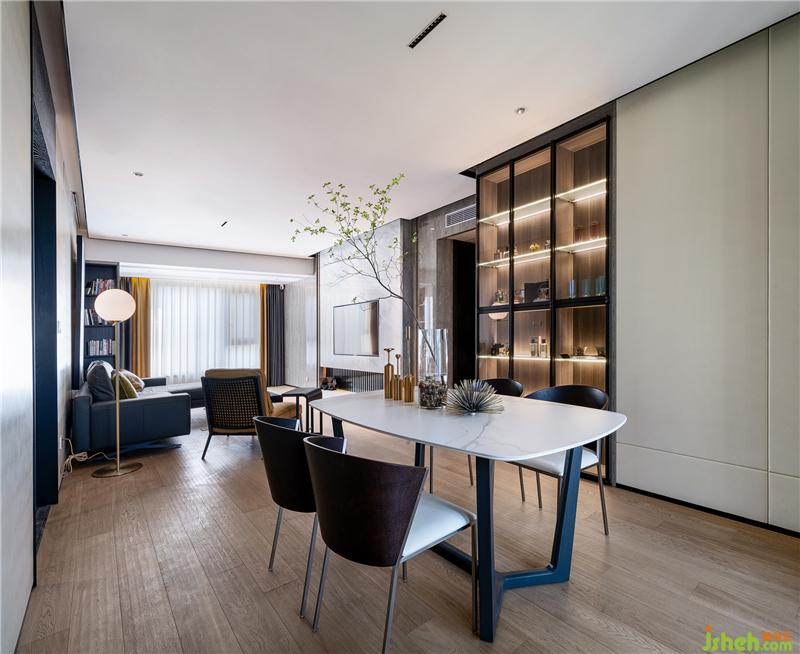 餐廳與客廳之間沒(méi)有明顯的邊界,在設(shè)計(jì)手法上將空間塊面之比例進(jìn)行調(diào)整,達(dá)到平衡穩(wěn)定。分割線確立之后,運(yùn)用機(jī)能不同的啟合方式,讓空間之相容性達(dá)到最大。造型干凈利落,凸顯現(xiàn)代簡(jiǎn)約的生活質(zhì)感與低調(diào)的奢華。現(xiàn)代極簡(jiǎn)的干凈利落與當(dāng)代質(zhì)感的美學(xué)風(fēng)度演繹得淋漓盡致。家庭裝修設(shè)計(jì)