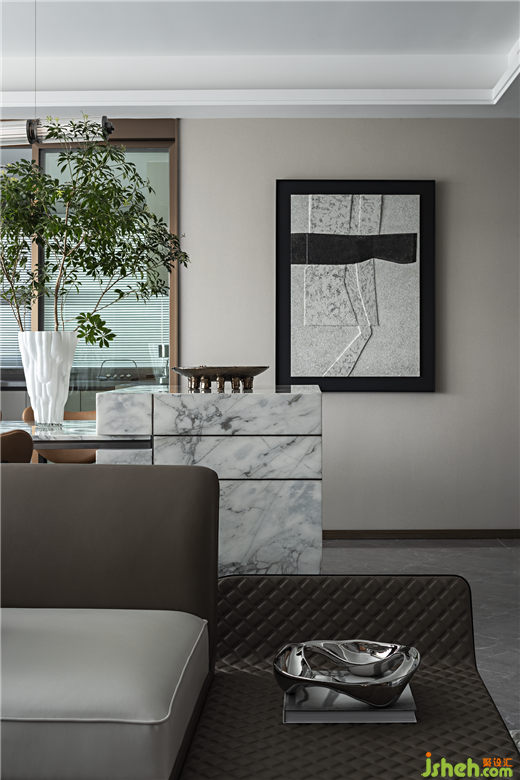 序列組合的金屬木質(zhì)結(jié)構(gòu)收納柜,樣板房設(shè)計將自然元素糅合進來,在光影映襯下,呈現(xiàn)出輕松溫暖、自然干凈的質(zhì)感。