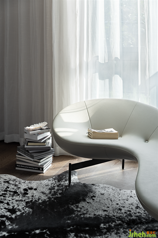 影音室,一處放松身心的精神角落。除去冗雜的裝飾,純樸簡(jiǎn)約的主色調(diào),弧形沙發(fā)和異形書本陳列架,在生活的張弛間從容有度。