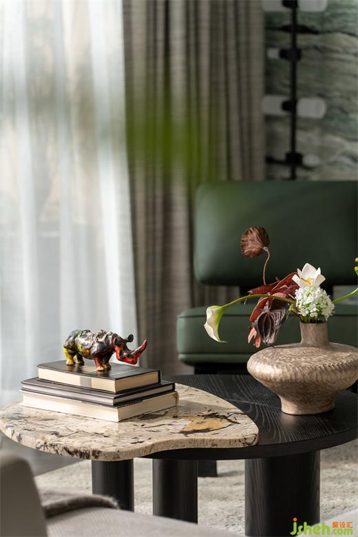 借助石材、布料、木材、皮革和金屬的交織,給予空間新的生命力,于此探索內(nèi)心的平靜與
