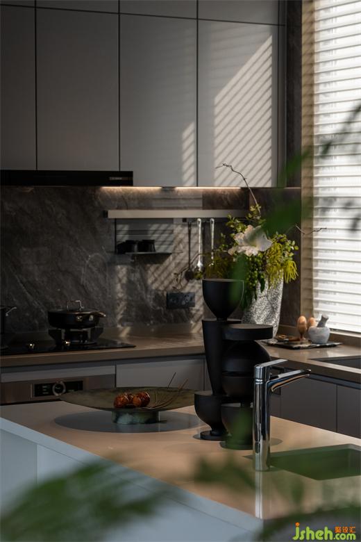 廚房的自然光線營(yíng)造出一種溫馨的氛圍,隔而不隔的設(shè)計(jì),增添了家人之間的互動(dòng)性和