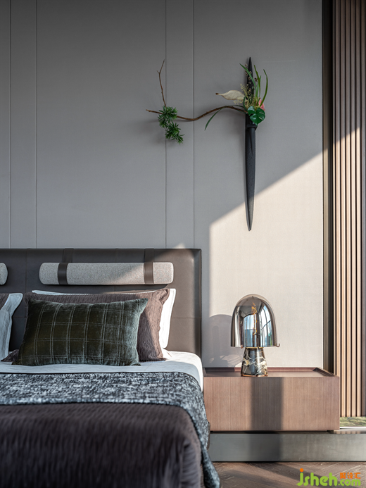 以素色起筆,納自然之形,塑造藝術(shù)與精神互融共生的主臥空間。