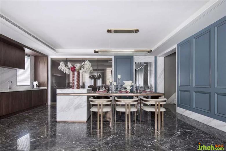餐廳餐桌大理石臺(tái)面與金屬腳搭配冷靜又沉穩(wěn),金屬配色的質(zhì)感,現(xiàn)代感十足,不經(jīng)意的細(xì)節(jié)中舒緩著法式優(yōu)雅。白色的瓷器擺件姿態(tài)萬千,猶如婀娜多姿的舞者,也如同舞者飄逸的裙擺,又如同盛開的花朵,無不呼吸著法式優(yōu)雅,不局限與風(fēng)格就是獨(dú)有的風(fēng)格。