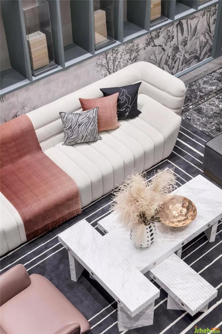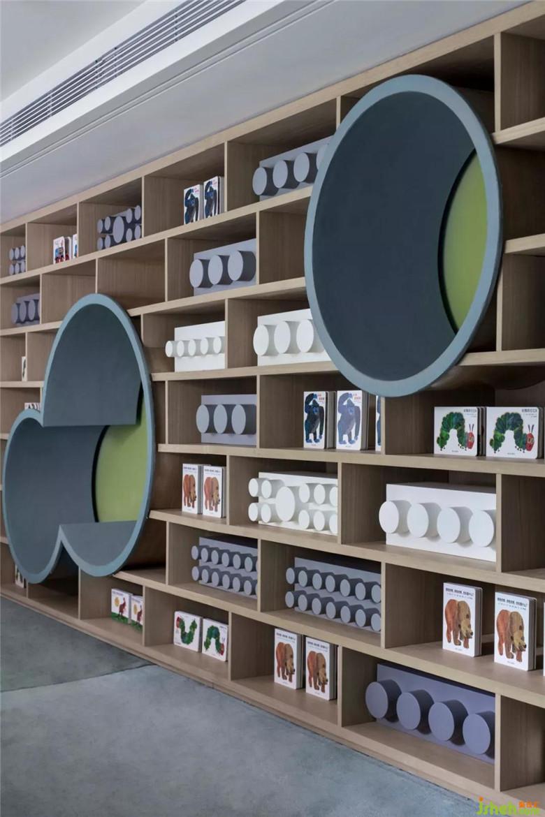 白色為主的個(gè)性不規(guī)則桌子,一處以圓形支撐的設(shè)計(jì)靈動(dòng)了空間,木色櫥柜擺滿了益智玩具與叢林書籍,從兒時(shí)熏陶人類與自然的知識(shí)世界。