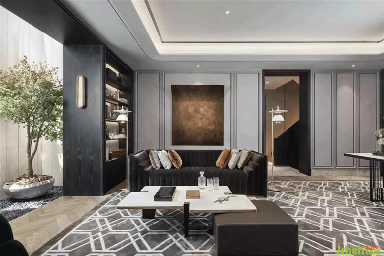 而為了打造一個西情東韻的舒緩空間,為夾層塑造了新的秩序:男主人的書房區(qū)域,一派線條硬朗的質(zhì)感天地。