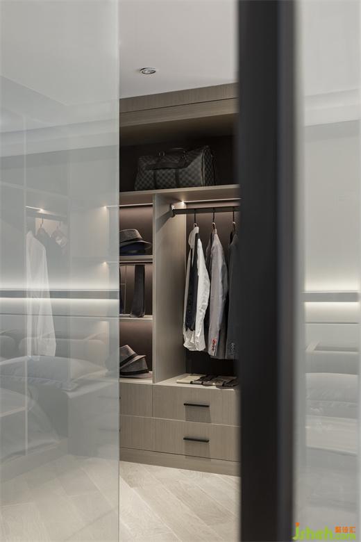 樣板房設(shè)計臥室設(shè)計動靜結(jié)合,對整個二層空間進行合理的劃分,減少生活中流動線路的紛擾。空間內(nèi)線與塊的結(jié)合溝勒出時尚的魅力,無主燈使得空間設(shè)計簡約整潔,而射燈的燈光又滿足各功能區(qū)域的光源需求,使得空間純凈舒適,有序歸整。軟裝表達上將灰色發(fā)揮到極致,糅合比例到最佳,點綴藍色KAWS,營造簡約奢華的風格,同時空間線條的深淺疊加,使空間深邃富有質(zhì)感。使得空間深邃且富有質(zhì)感。
