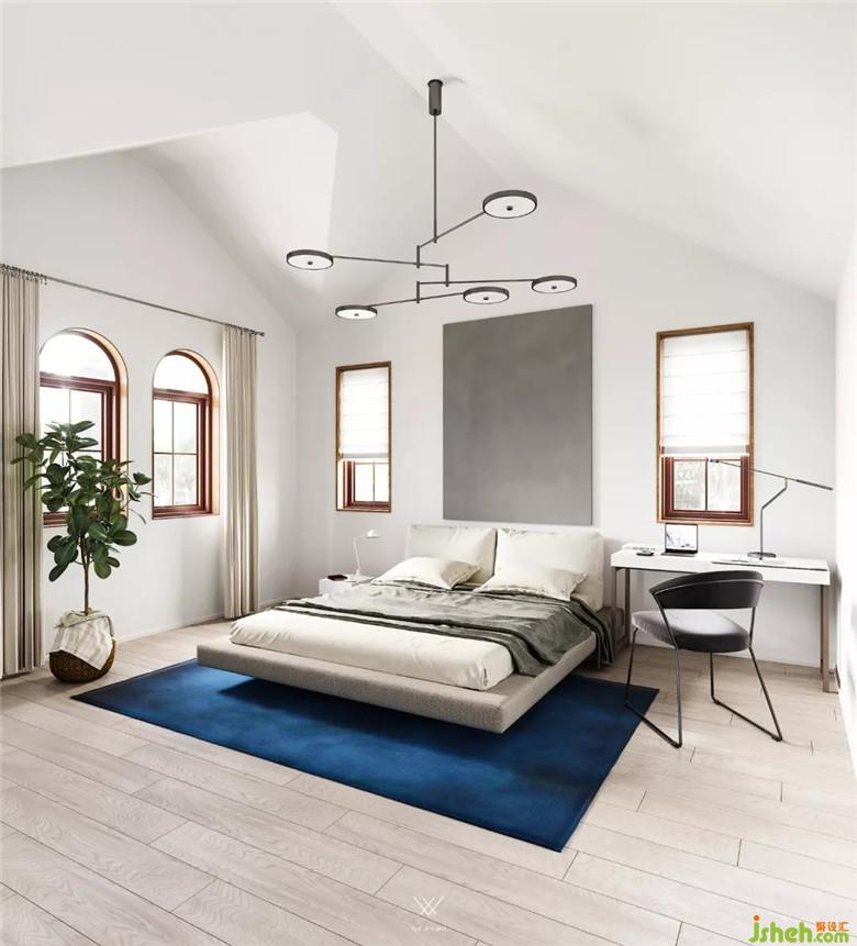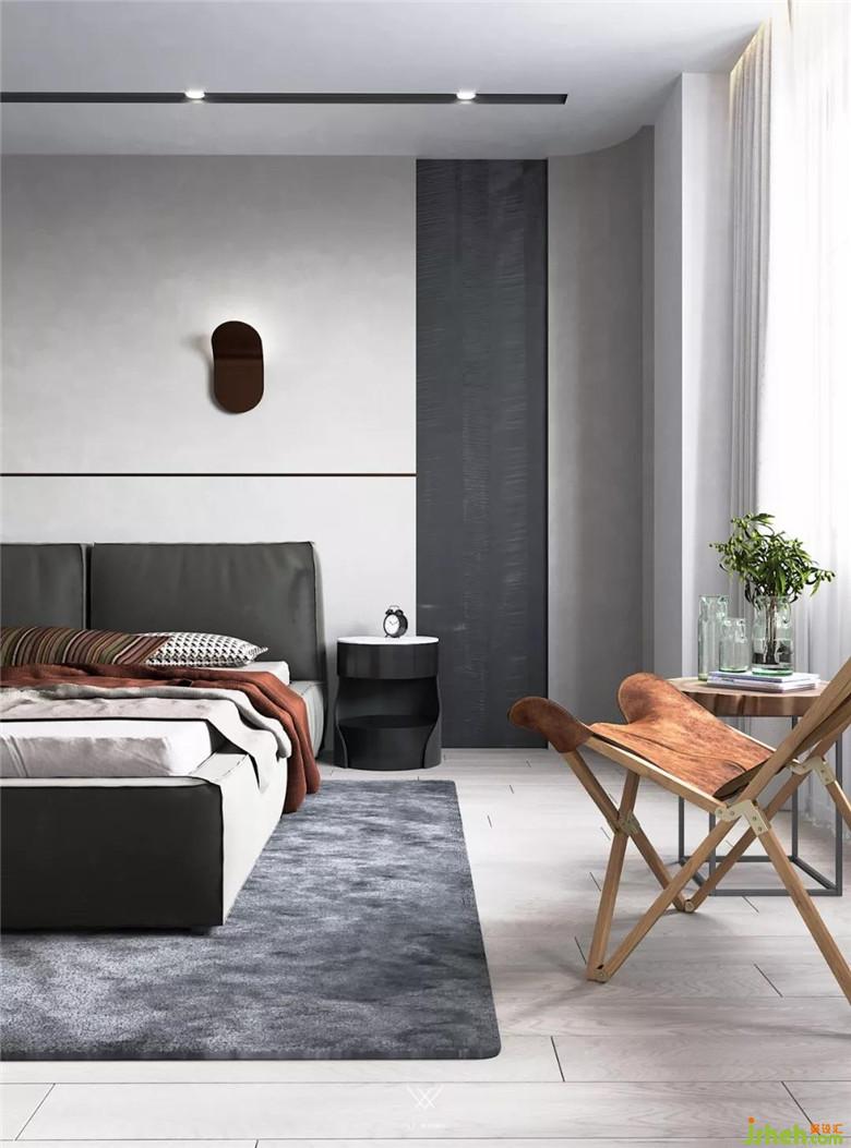 主臥室的墻面色調(diào)與衣柜融為一體的,讓居室空間顯得安靜整潔。