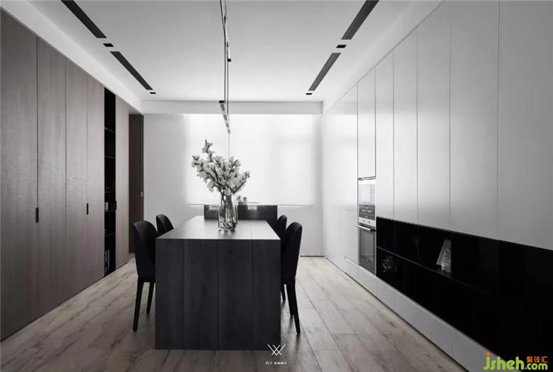 以白色基調(diào)為設(shè)計主體,凸顯材質(zhì)最自然的美感,并且圍朔出純凈自然的空間氛圍,另外將黑色鐵件點綴式加入空間之中,增加空間的立體層次感和流動感。