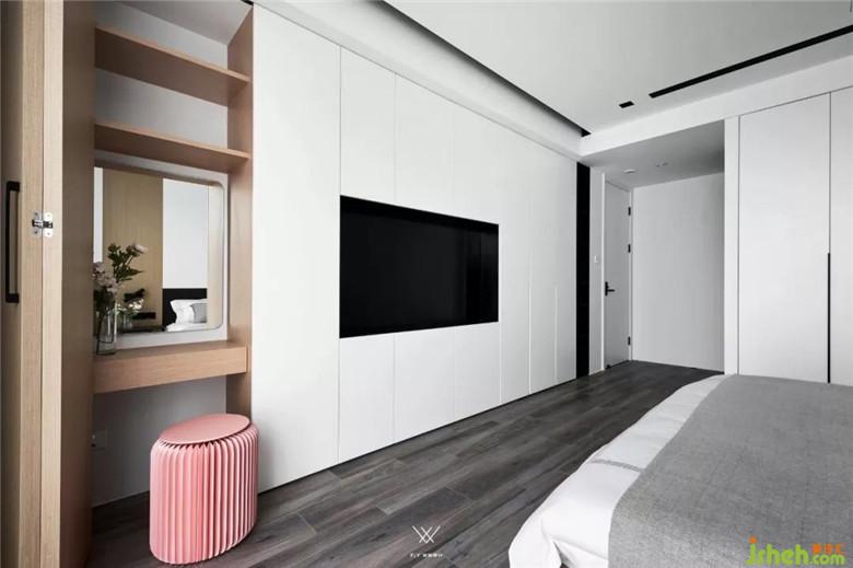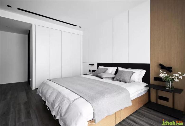 臥室空間的底色依然延續(xù)白色,凈白的空間內(nèi)包容著淺色木紋紋理、沉穩(wěn)的清水色地面,木質(zhì)紋路清淺帶出自然質(zhì)感,更添溫柔感受。