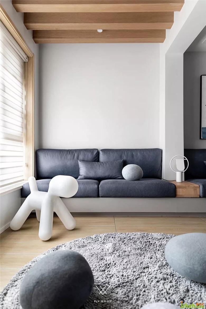 納入客廳后的陽臺梁過于突兀,在原陽臺做裝飾結(jié)構(gòu)梁,弱化處理達(dá)到空間配比的合理性,整個(gè)客廳更加和諧歸一。