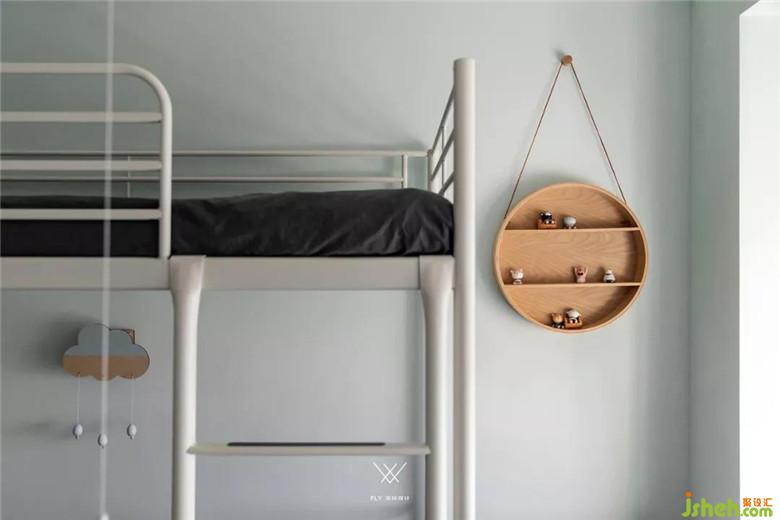 雙人床考慮到業(yè)主二胎的計劃,去掉飄窗以長書桌代之,以便小孩子日常學(xué)習(xí)。云朵燈、氣球燈、圓木掛件、開關(guān)旁的小小獨角獸,每一處的小心思都在守護孩子的那一份天真爛漫。