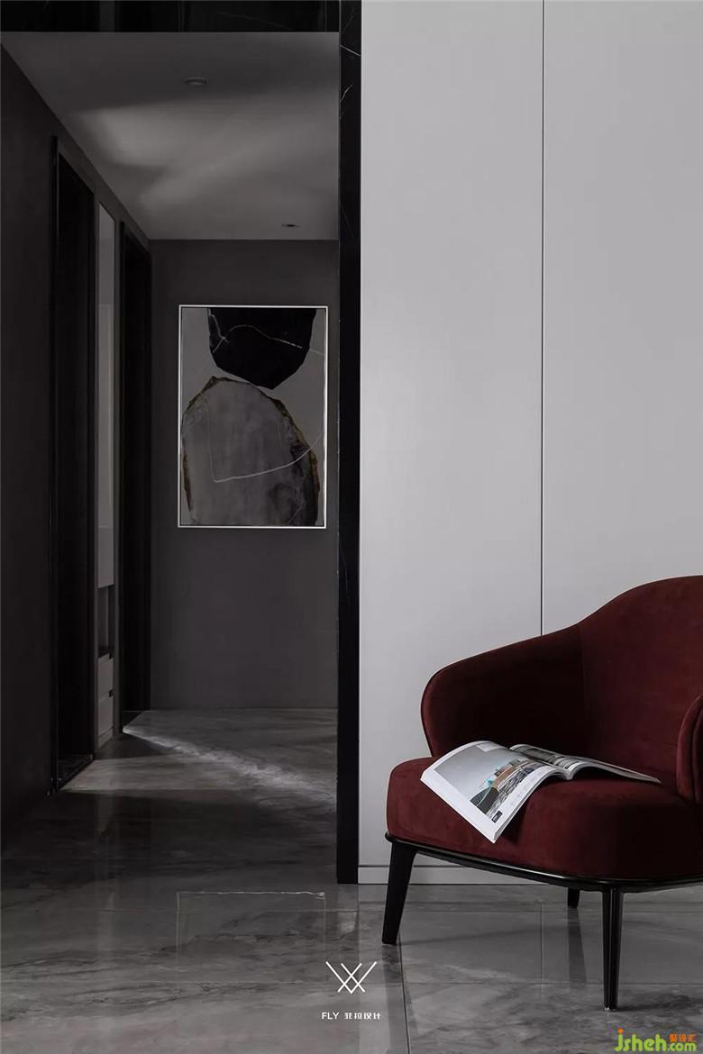仔細(xì)對比一下走廊的兩盞筒燈能夠看到他們不在同一條線上。特意讓光線從畫的右邊向下打,讓這幅畫的感覺和整體效果更搭,也形成一個(gè)非常有氛圍的端景。