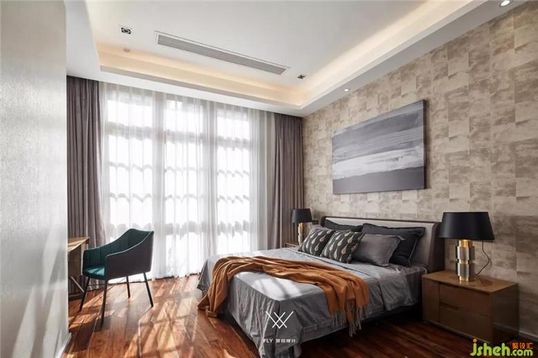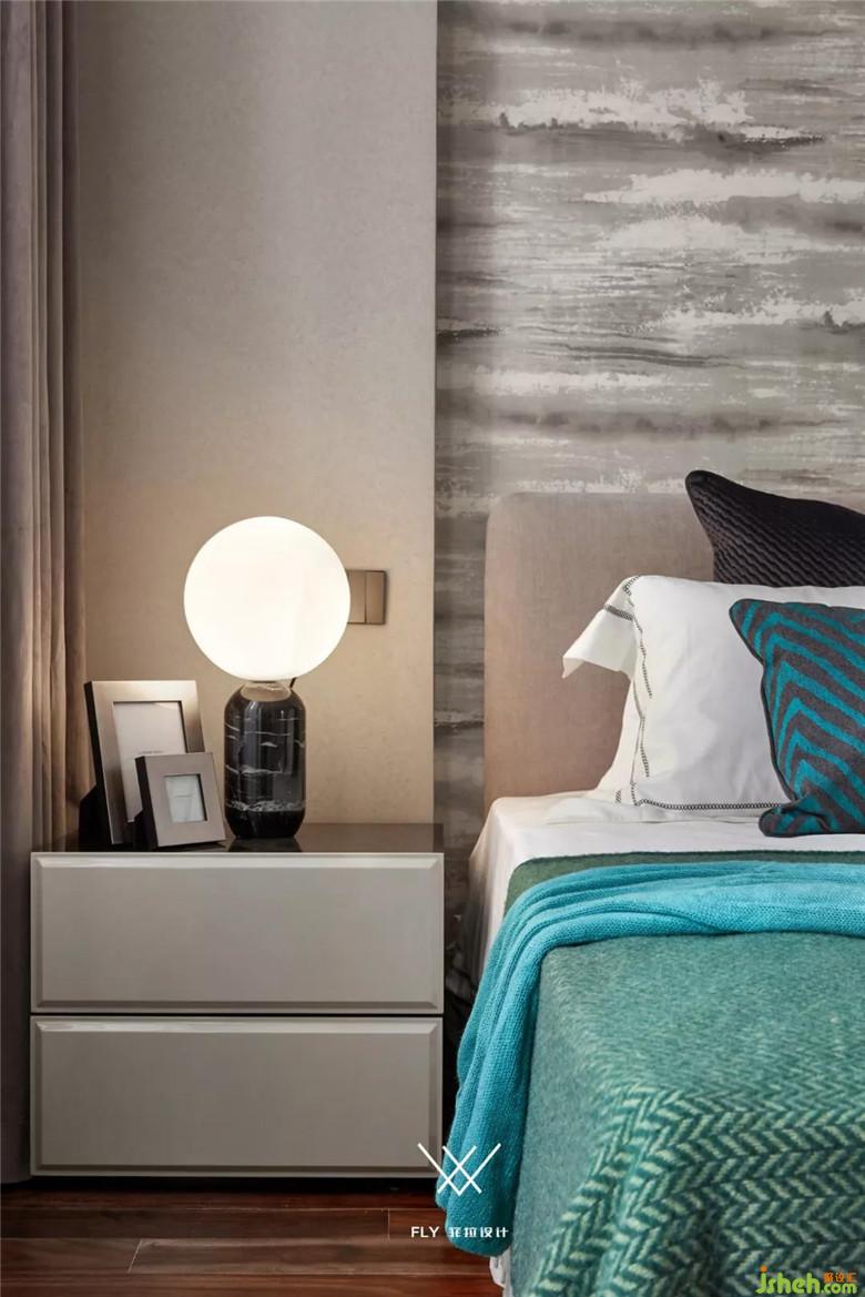 作為睡眠空間,主旋律應(yīng)該是寧靜和諧。原來需要穿過臥室才能到達(dá)二樓露臺(tái),干擾到了臥室的生活,主臥室的門直對(duì)樓梯口,一開門便是臥室的睡眠區(qū),破壞了臥室的私密性,主臥衣帽間過小,而且沒有通風(fēng)和采光。在與業(yè)主溝通之后,主臥室采用的是同色系的色彩對(duì)比,用寧靜平和的藏青和藍(lán)色作為點(diǎn)綴,床背景利用抽象水波紋壁紙和圓形掛件讓人聯(lián)想到印象派畫家莫奈的《日出·印象》一副平靜祥和的景象!