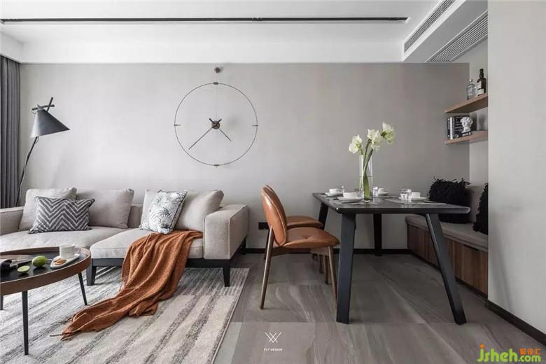 設計師應該考慮每一件東西的設計語言,這樣才能夠圍繞整體的設計主題來展開設計,每處都聚焦于一點。客廳的軟裝鐘掛件,是西班牙品牌nomon的現(xiàn)代簡約個性創(chuàng)意掛鐘。只用非常簡單的幾何線條勾勒而成,簡單而有條理。但在墻上的影子隨著時間變化而有不同造型,平淡中見神奇。