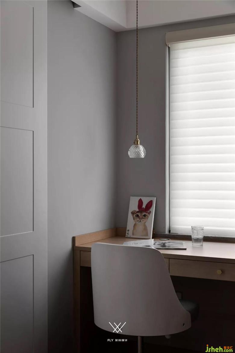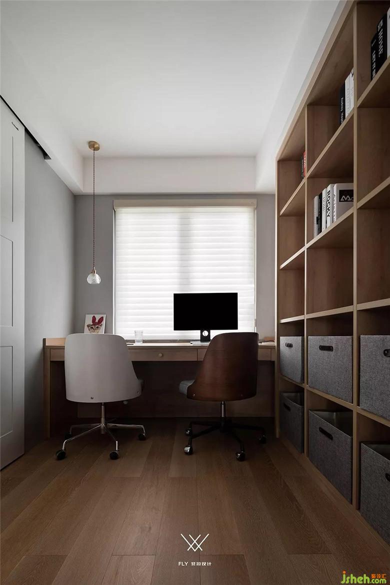 書房朝客餐廳的門是對開的玻璃門,書房即使關(guān)著的時(shí)候也不影響南面窗戶的光線進(jìn)入客廳,又能保證相對的私密性。