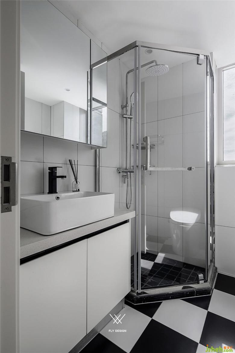 衛(wèi)生間干區(qū)規(guī)則拼貼的地磚簡約大氣。