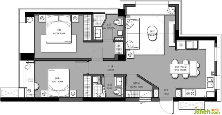 木頭做成的床頭和裝飾畫使屋子酷起來,床頭柜上的擺件與整個空間一起生出流行藝術氛圍。